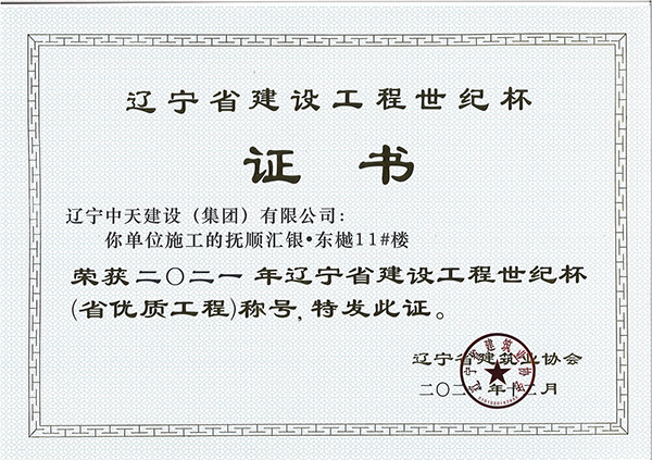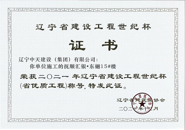 遼寧中天建設(shè)集團領(lǐng)導(dǎo)班子認真貫徹落實科學(xué)發(fā)展觀,堅持以人為本,積極培育“開拓進取,求新向上,求真務(wù)實,團結(jié)奉獻”的企業(yè)精神和“干一項工程交一方朋友,占一方市場,樹一座豐碑”的經(jīng)營理念。經(jīng)過遼寧中天建設(shè)者的辛勤耕耘,許多建筑精品工程象一座座豐碑聳立在撫順大地上,令人矚目。撫順市保障性住房建設(shè)工程榮獲全國優(yōu)質(zhì)工程金獎,撫順移動通訊綜合樓、撫順市電信綜合樓、撫順市三寶屯污水處理廠擴建及中水回用工程等多項工程獲得“遼寧省世紀杯工程”、“遼寧市政金杯”工程等殊榮。公司還多次榮獲“省建筑業(yè)質(zhì)量管理先進施工企業(yè)”稱號。